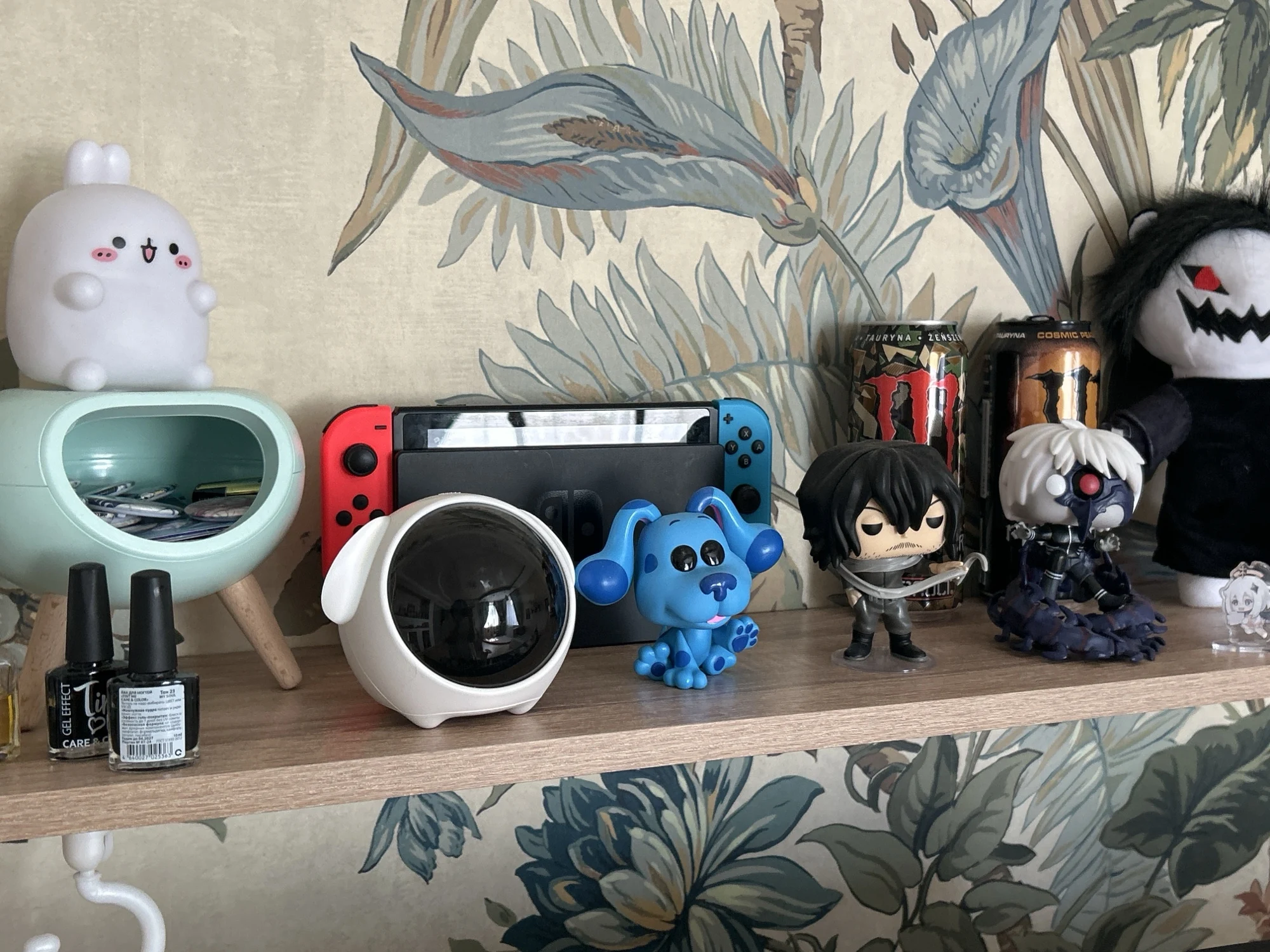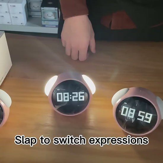 It looks exactly like the pictures and it's very charming. It gives you several options for alarm chimes and i love that it doubles as a night light. It wakes up and animates whenever you lightly touch it, then shows the time. The instructions were easy to follow and i'm very satisfied.