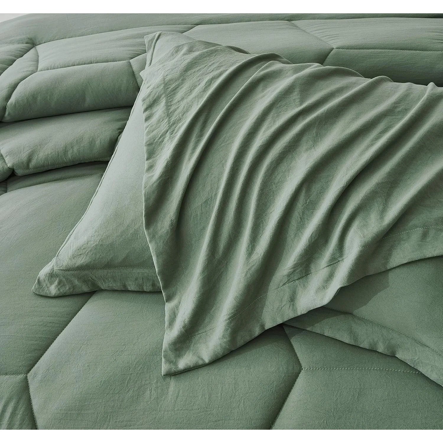 Vero Sage Green Comforter Set Oversized Queen Size 3-Piece Fluffy Soft Lightweight Bedding Honeycomb
